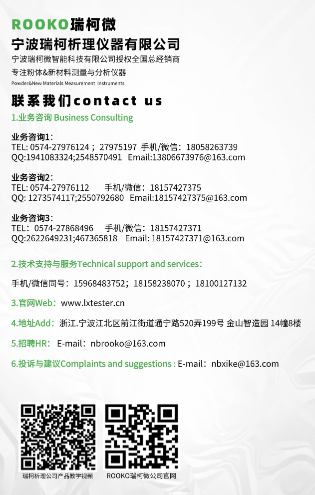 ROOKO瑞柯微專注于粉末/粉體/顆粒流動性測試儀,振實/松裝/堆積密度測定儀,休止角測定儀,安息角測定儀,粉末電阻率測試儀,粉體綜合特性測試儀,四探針/方阻/電阻率測試儀,材料體積/表面電阻率測試儀廠家提供技術資訊和解答