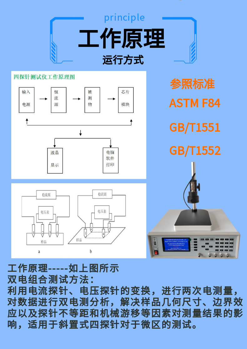 三.四探針電阻率/方阻測(cè)試儀按照便捷性劃分為手持式和臺(tái)式機(jī)型,比如需隨身攜帶的手持四探針測(cè)試儀就是便捷用途;