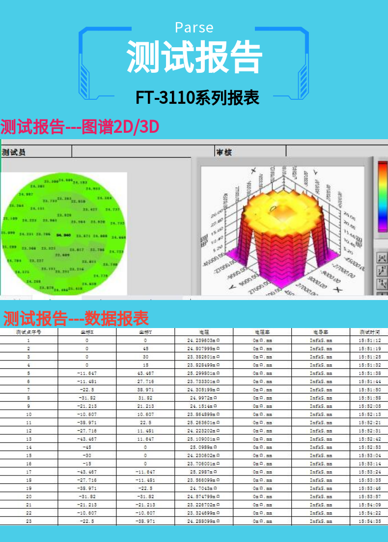 四探針電阻率/方阻測(cè)試儀大體分類(lèi)為,全自動(dòng)類(lèi)型和半自動(dòng)類(lèi)型;全自動(dòng)類(lèi)型成本高,精度和穩(wěn)定性要求也高,如全自動(dòng)四探針測(cè)試儀一般采用MAP地圖圖譜方式來(lái)描述整體樣品均勻性及方阻和電阻率數(shù)據(jù),也就是應(yīng)用2D和3D 圖.