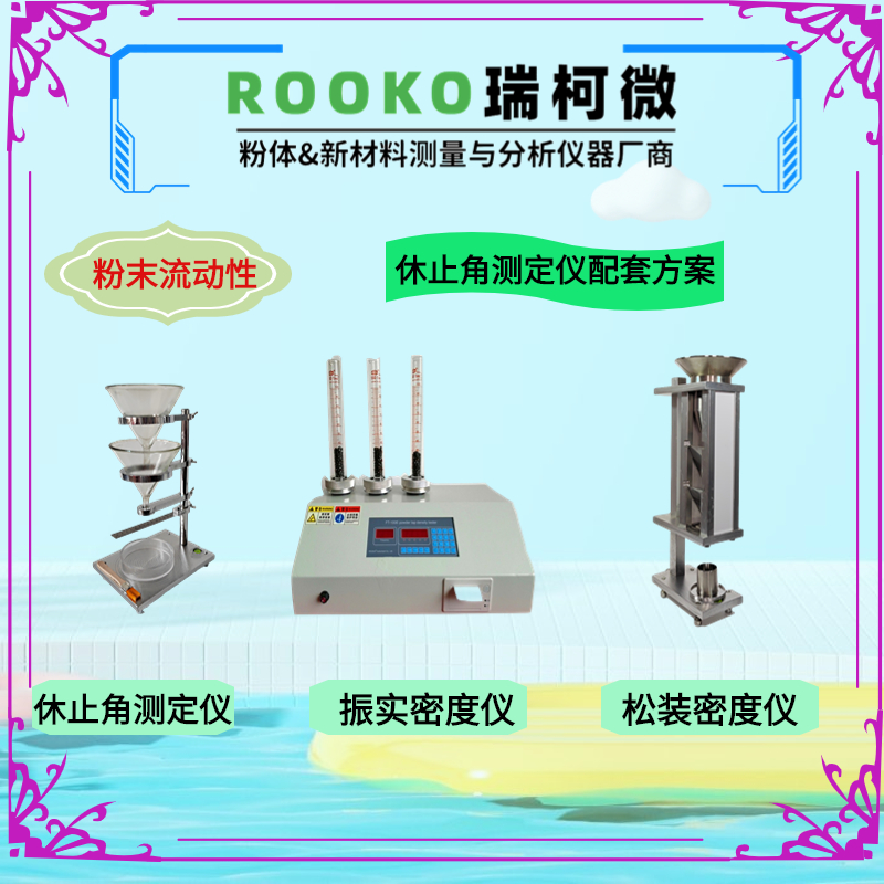 test time and angel of powder and particle pass through the funnel , preaccumulate before testing, so as to determine the sample weight, the known mass powder flowed from the funnel and form the accumulation of Angle, and the time it takes to outflow;You can obtain the angle of repose and the flow rate data.
