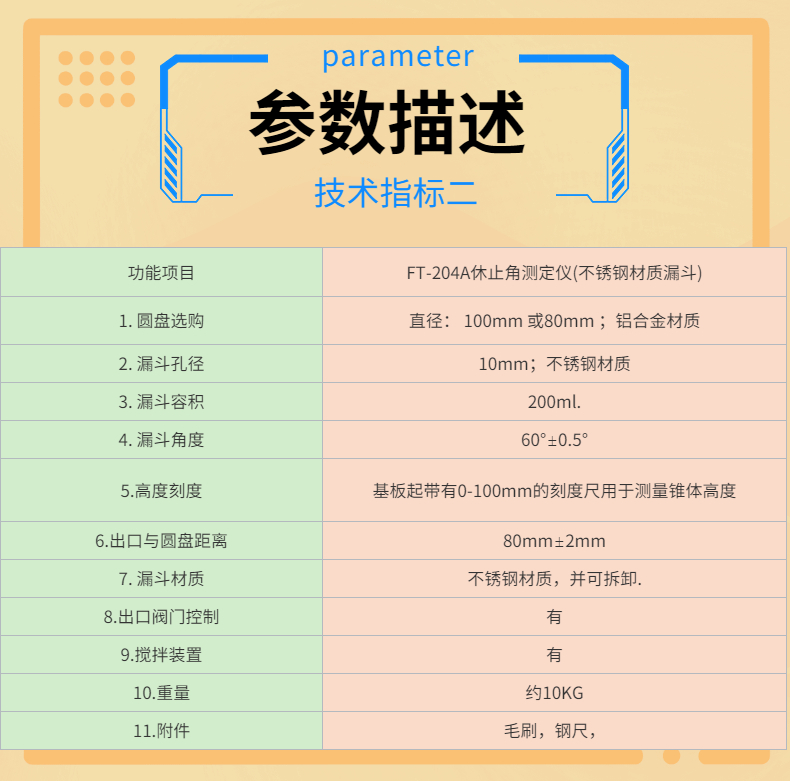 It was designed and manufacured According to GB11986-89 "determination of surfactant powder and particle angle of repose "
