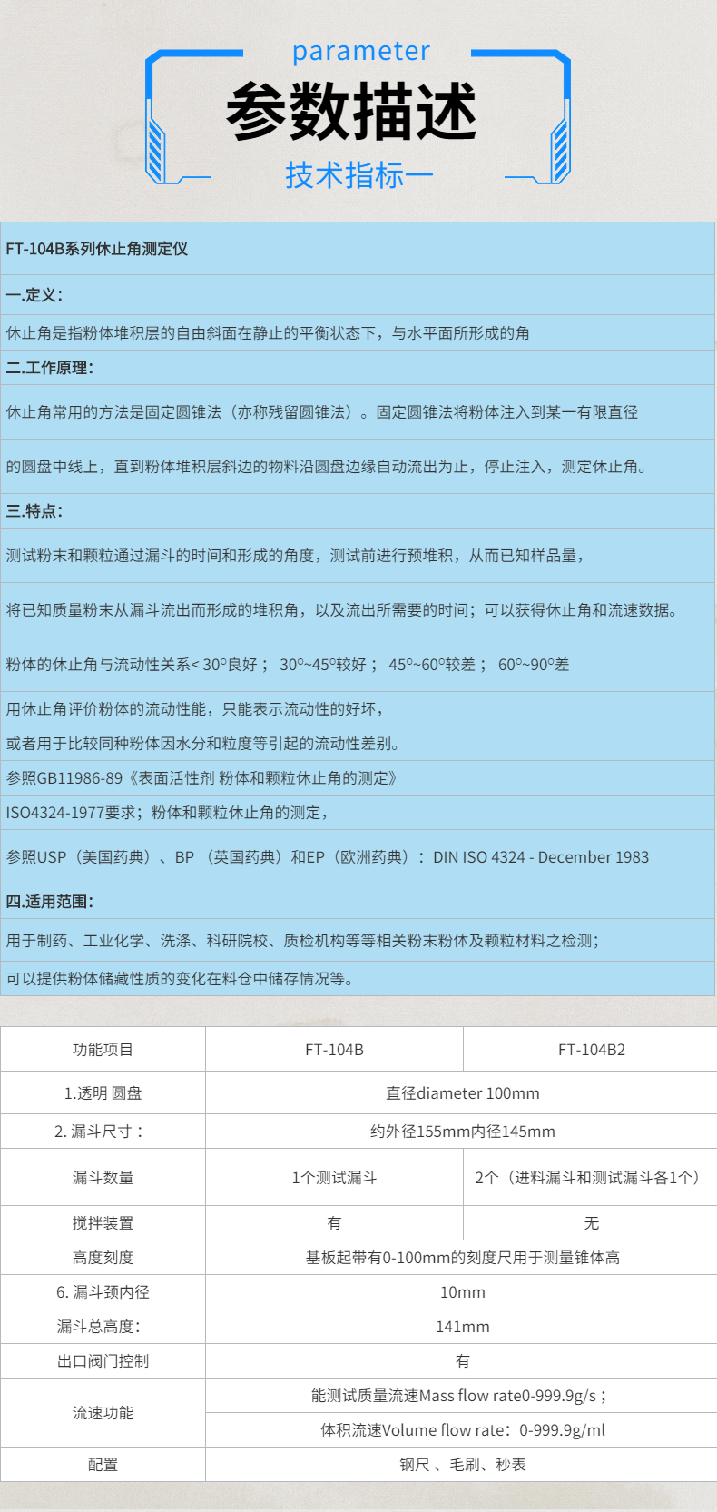 FT-104B Series angle of repose meter